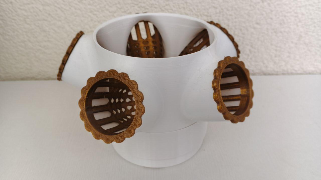 За 750 рублей можно стать счастливым владельцем одной секции от гидропонической башни. Зачем? С целью расширить свою уже имеющуюся башню и получить в подарок расширитель к этой секции на 3 сантиметра (это важно, ну, иногда) и пять многоразовых стаканчиков для рассады. А если башни у вас ещё нет, то подумать о преимуществах домашней гидропоники и заказать три секции, вместе с которыми, кроме трёх расширителей и стаканчиков, вы получите: все фитинги и насадку на практически любое пластиковое ведро. Секция на пять посадочных мест (внутренний диаметр посадочного места - 37 мм, глубина - 54 мм), диаметр ствола башни - 10 см.